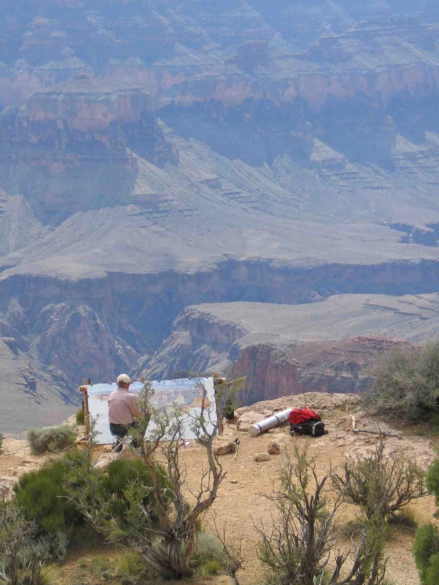 Tony Foster painting in situ at Point Sublime, Grand Canyon, 2004, as part of his Journey, Searching for a Bigger Subject. Photo by John Frazier